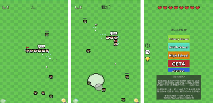融合词汇学习与像素冒险的创新型单机产品。玩家操控角色在网格化世界中移动,通过“蛇形”路径机制触发单词记忆事件,血条系统增加策略维度。内置词库覆盖初高中课标核心词汇,所有学习模块、动画帧及关卡数据均打包完成,安装后即刻启动,无任何外部API调用或云端同步行为。