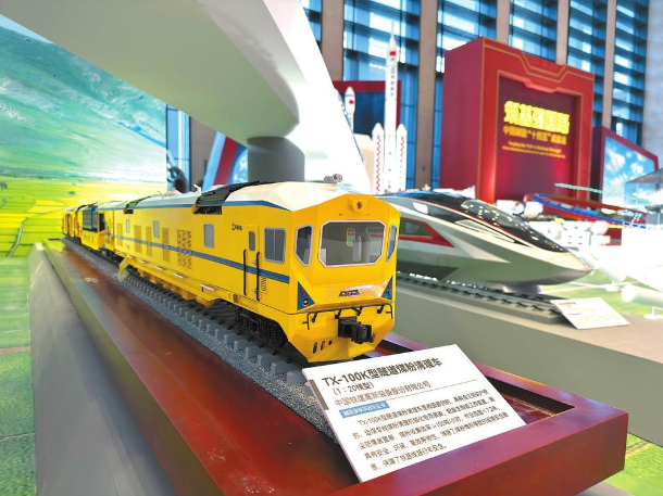 图为展出的TX-100k型隧道煤粉清理车模型。
