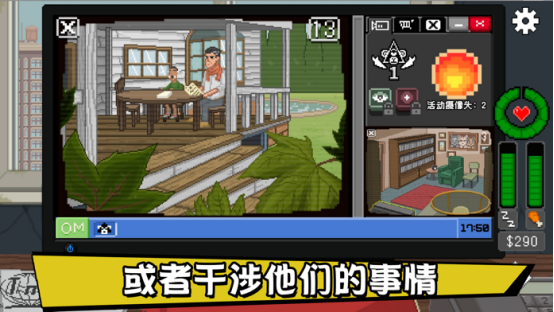 这是一款聚焦社会观察与伦理抉择的叙事驱动型模拟游戏。玩家加入隐秘监控组织,通过实时摄像头系统观察城市居民日常。当发现异常行为或潜在危机时,可选择介入——介入后将触发连锁责任机制:需承担被观察者的居住成本、基础生存供给,并持续维护自身精神稳定值与生理健康指标。系统反馈真实且具延展性,深刻探讨隐私边界与干预代价。
