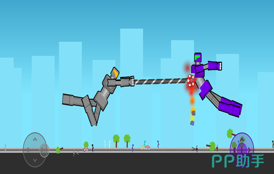 本作采用横版卷轴战斗框架,突出机甲部件可交互特性。每台机体配备独立武器系统与防御模块,战斗中可通过虚拟按键组合释放格挡、闪避、蓄力重击及环境联动技。场景内置可触发机关(如塌陷地板、弹射平台、电磁陷阱),合理利用地形能显著提升输出效率与控场节奏。PVE关卡设有阶段式难度递进,支持双角色轮换上阵。