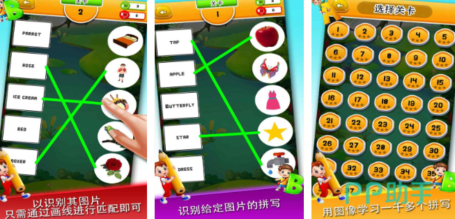 将基础英语词汇学习与经典连连看玩法深度融合,构建沉浸式语言启蒙路径。每组配对由具象化图形与对应英文单词卡片组成,儿童通过指尖划线连接相同元素,系统实时判定匹配结果。关卡结构按认知梯度设计:前5关以动物、颜色、数字等高频基础词起步,帮助建立规则理解;后续逐步扩展至12词/屏、多义词辨析及简单短语组合,强化记忆锚点与语义关联能力。