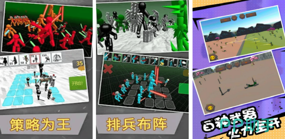 这是一款策略驱动型火柴人格斗游戏。玩家需组建由数十名火柴人组成的作战小队,依据角色所持武器(涵盖近战冷兵器、远程投掷物及能量装备等上百种)进行阵型部署与出战顺序编排。战斗采用轮替式自动交锋机制,强调兵种搭配、技能克制与资源管理,弱化传统格斗中的微操要求,突出战术布局深度与战局演变张力。