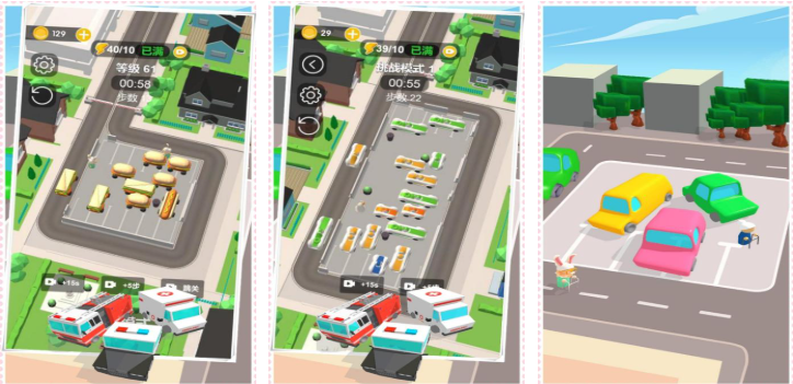 游戏采用轻量化操作逻辑,支持一键选中目标车辆并自动完成平移或旋转动作。场景设定以绿色植被环绕的生态停车场为主,界面色调柔和,降低视觉疲劳。每关均呈现高密度车辆堆叠状态,部分车辆被完全遮挡,需通过连锁移动释放空间。进度系统支持连续通关加速,适配碎片化娱乐需求。