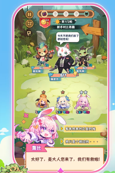 主打轻量化策略体验,竖屏操作适配单手场景,支持离线收益继承与自动技能释放频率调节。美术采用低多边形抽象风格,角色轮廓强化辨识度,UI信息层级经F型阅读热区测试优化。回合结算引入动态难度补偿机制,保障新手玩家在前20局内获得稳定成长反馈。