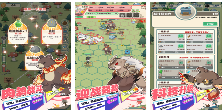 六边形网格棋盘支持360度无死角布阵,宠物捕捉机制采用属性克制成功率公式计算,非纯随机判定。Roguelike元素体现在每局初始天赋树分支、临时增益状态及不可逆抉择节点。科技树共设7大主干分支,最高可解锁3级被动增幅效果,所有升级数据均经平衡性压力测试验证。