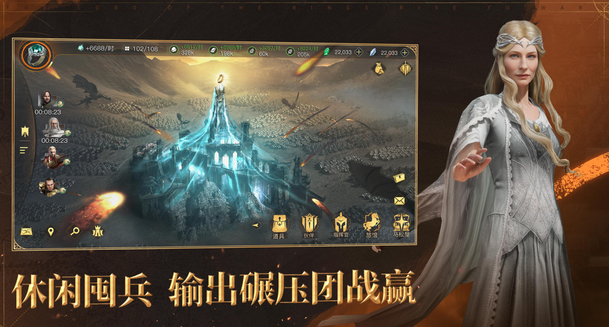 这是一款以中土大陆阵营对抗为核心的策略战争手游。采用俯视角实时演算战斗系统,支持千人级部队同屏调度;精灵、矮人、人类与堕落势力四大阵营各具兵种特性与专属科技树。地图采用模块化区域设计,涵盖迷雾山脉、洛汗平原等经典地理单元,建筑模型与单位动作帧数均达主机级标准。技能体系强调AOE范围判定与地形交互,战局逆转常取决于一次精准的法师轰炸或骑兵侧翼突袭。