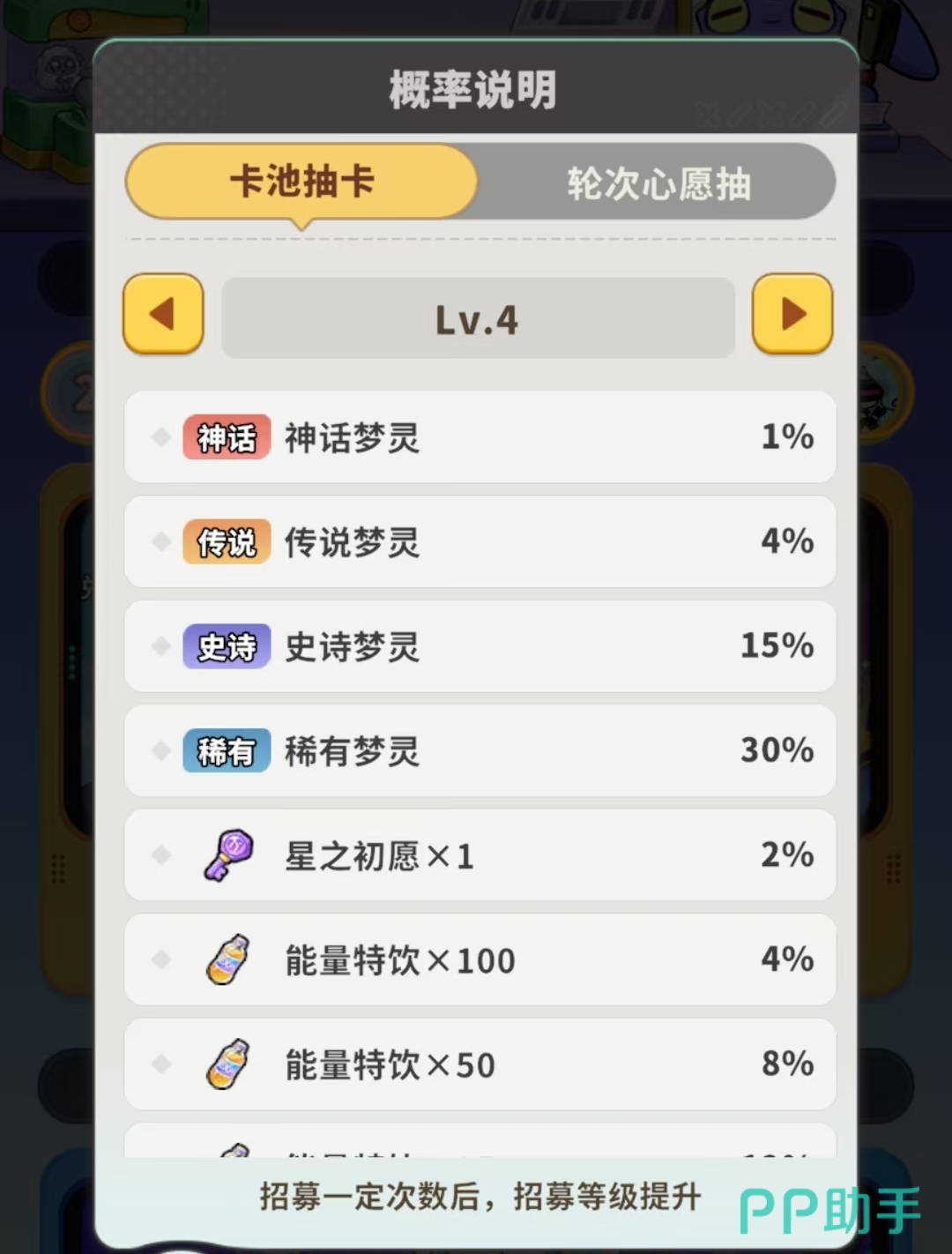 神话梦灵主要通过梦灵招募卡池抽取获得。参与该卡池需消耗“梦灵招募器”,该道具可通过商城直购、钻石兑换、限时礼包等多种常规途径获取。值得注意的是,该卡池设有动态概率机制:每次招募均累积卡池经验,经验满额后卡池自动升级,升级后神话梦灵的基础抽取概率同步提升。此外,“心愿招募”模式同样存在触发神话梦灵的概率,为定向培养提供辅助支持。