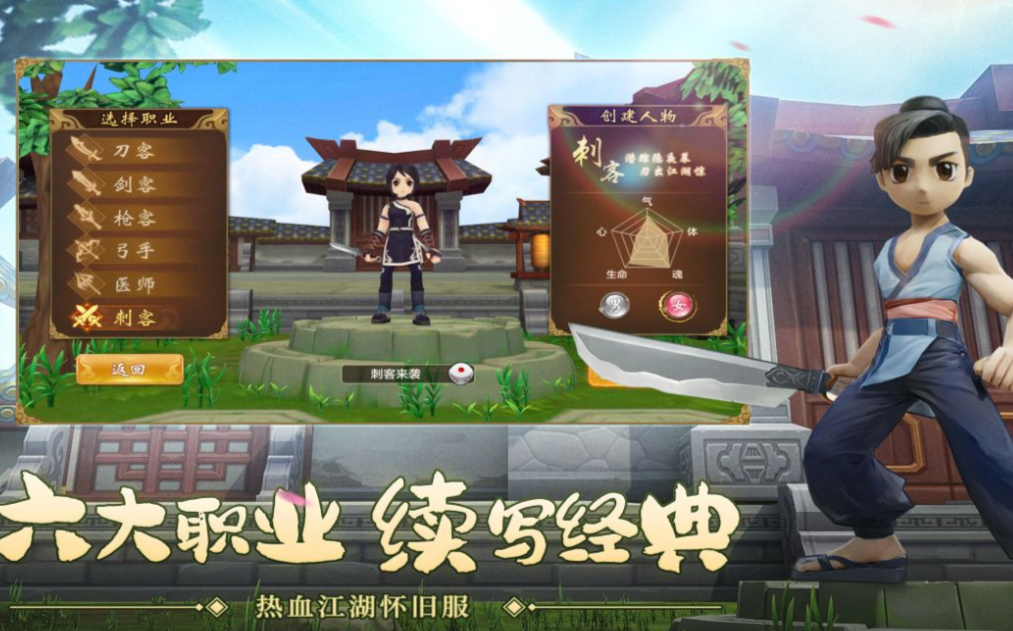 由同名经典端游正版授权移植,延续原作清新国风美术风格与快节奏战斗节奏。六大基础职业各具特色:剑客爆发突出、刀客生存优异、医者辅助全面、弓手远程压制、丐帮控制强势、刺客机动灵活。技能组合支持自由连招配置,轻功位移与空中连击机制还原端游操作感。世界地图采用无缝加载技术,野外遭遇战、帮会攻防、跨服擂台等MMO核心玩法完整保留。