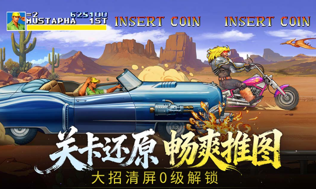 致敬经典街机《恐龙快打》的横版动作闯关手游。关卡设计严格复刻原作节奏与难度曲线,BOSS建模还原度高,招式反馈精准有力。主角具备连击、格挡、闪避及必杀技等完整操作体系,大招释放具备全屏清怪爽感。武器系统开放程度高,棍棒、刀剑、火器等十余种装备可随进度解锁并自由切换,不同武器对应差异化战斗风格,策略性明显增强。