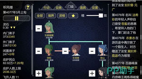 采用文字驱动式交互架构,构建严谨的宗门运营模型:弟子婚配系统影响后代天赋遗传;专长匹配机制决定其在灵药培育、典籍整理、外事交涉等岗位中的效能输出;资源流(灵石、灵材、声望)与生产链(炼丹、制符、铸器)深度耦合;剧情节点设置多重分支选择,关键抉择将导向截然不同的宗门发展轨迹。