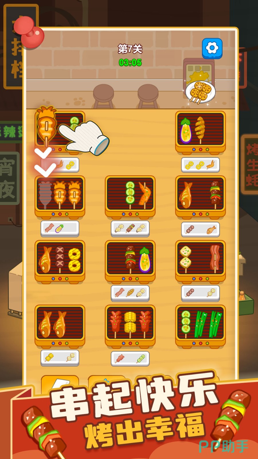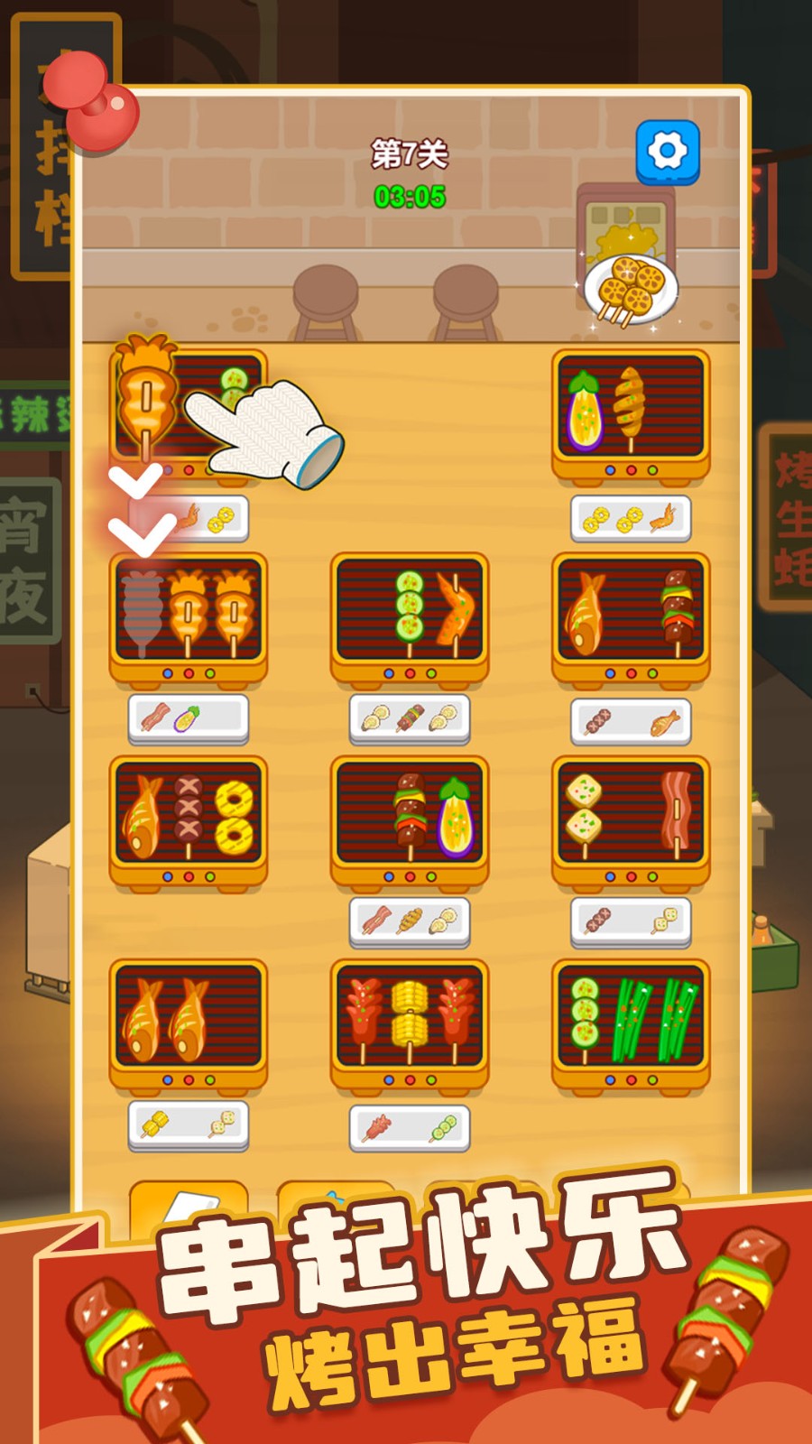这是一款以快节奏餐饮经营为核心的单机模拟游戏。玩家化身烧烤摊主,面对络绎不绝的顾客需求,在有限时间内完成点单、串肉、翻烤、撒料、装盘全流程。火焰动态效果真实,食材反馈细腻,时间管理机制带来适度紧张感。所有关卡逻辑、资源计算及成就系统均在本地运行,全程无需联网。轻松上手却富有策略深度,适合碎片化时间放松身心。