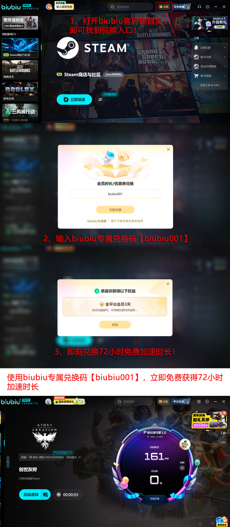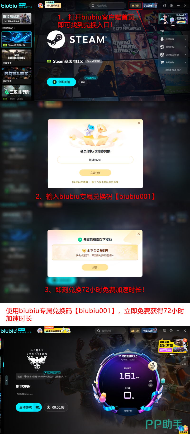 目前该加速器面向新用户提供多重体验权益:首次注册并完成登录即可获赠24小时免费加速时长;所有用户均可在官方页面输入兑换口令【biubiu001】领取3天加速权限。两项叠加后,新用户累计可享96小时免付费使用周期。其底层技术由阿里巴巴灵犀互娱大厂技术加持,集成自研帕拉斯3.0加速引擎,实现协议深度优化与传输效率跃升。同时,该产品亦为PUBG冠军选手小叮当指定加速器,经职业级实战验证,具备可靠的技术公信力与服务保障能力。