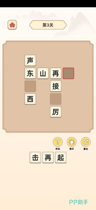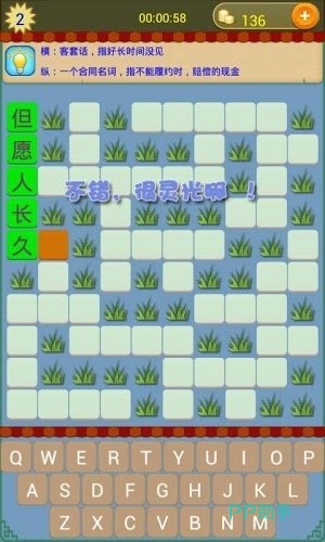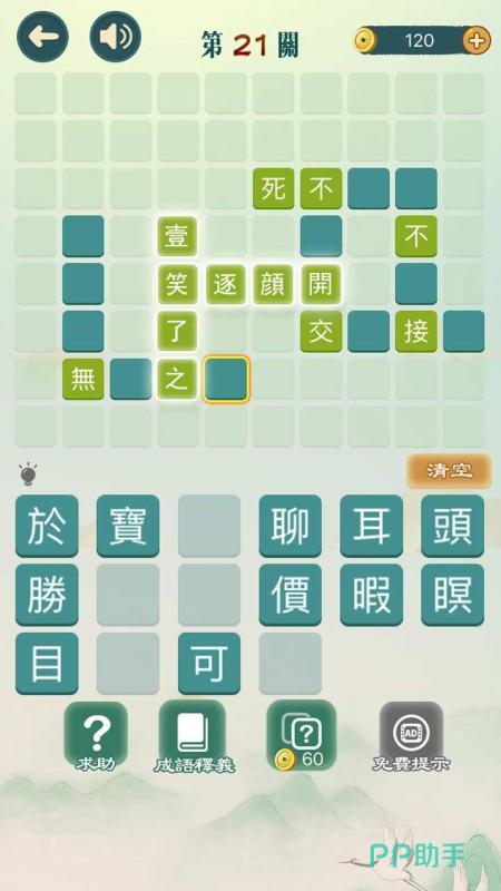 本作采用标准网格填字结构,每关提供若干空格与提示线索,玩家需准确填入单字或词语,使横向与纵向均构成规范成语。题库覆盖超三千条常用及进阶成语,难度梯度清晰;点击式交互响应迅速,适配各年龄段操作习惯。持续通关可显著强化词汇联想能力与语境判断力。