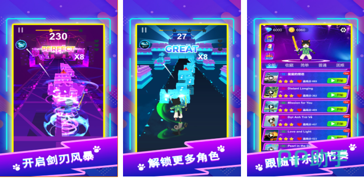 创新融合动作打击与节奏判定的垂直向音游,主角为拟人化双剑猫战士,核心机制为“节拍斩击”——玩家需在音符抵达判定线瞬间完成对应方向滑动或点击,触发连击特效与剑刃风暴技能。关卡设计嵌入Roguelike元素,每次通关可解锁新武器皮肤、角色语音及隐藏BGM,共收录超120首原创电子摇滚曲目。