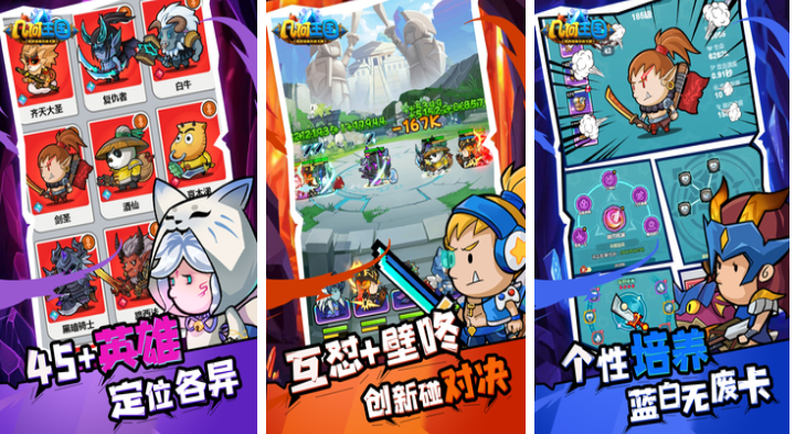 以卡皮巴拉为灵感来源的策略卡牌手游,《几何王国》主打轻度放置战斗与角色养成双线并进的设计理念。游戏中提供超过四十位风格各异的英雄角色,每位均可自由部署参与自动战斗;UI界面采用软萌画风,与高燃技能特效形成鲜明对比;抽卡系统坚持“无废卡”原则,所有卡牌均具备成长路径与实战价值;战斗机制融合站位策略与技能连锁,节奏明快且富有策略纵深感。