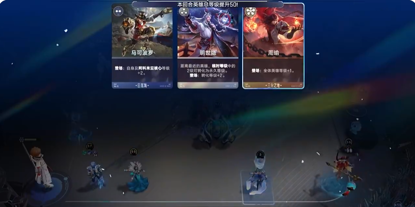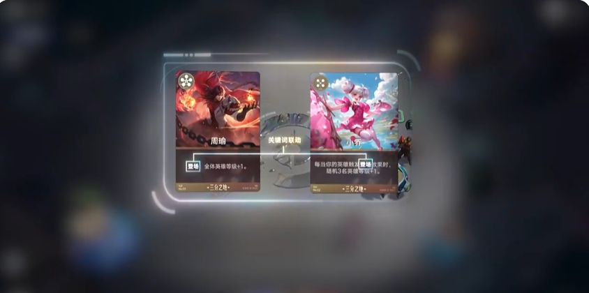 比方说周瑜登场时,会自动触发自己关键词效果,使场上全体英雄等级+1,这时和小乔的关键词产生卡牌联动,就能进一步提升场上英雄等级,巧妙运用不同卡牌联动。英雄上场后,不能再重新回到手牌当中,只有通过累计打出4张相同英雄牌触发英雄觉醒,才能再次回到手牌中。