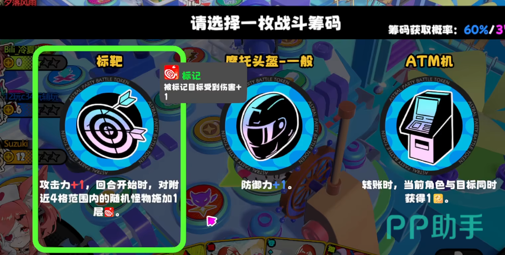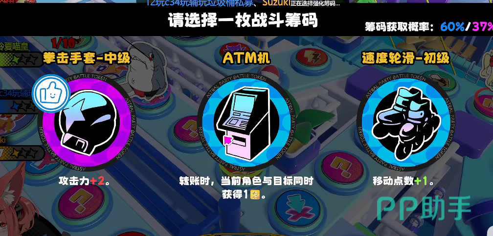 吉星派对在行走的过程中,玩家们除了需要收集金币以外,还需要获取筹码,筹码相当于游戏的buff,可以提高玩家们的对局胜率,并且还能增加一部分的战斗能力,自然吉星派对筹码怎么获取成为了新手玩家的关注重点,这里就分享一下筹码的获取方法以及选择,帮助玩家们提高对局的通关概率。