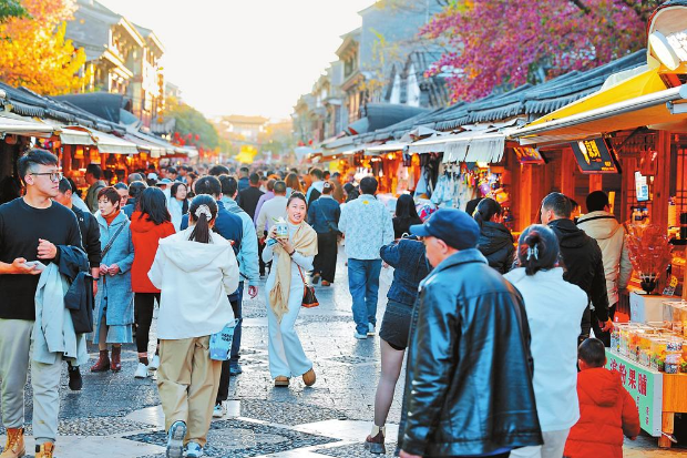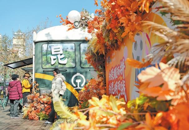 游客在昆明老街打卡拍照。 记者 高吴双 黄兴能 摄