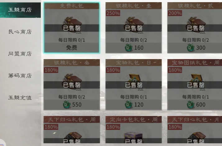 当国家贡献值达到一定阈值后,商店资源的差异化采购策略将直接影响成长上限。玉髓商店适合高投入玩家,其兑换物品(如稀有武将碎片、高级技能书)具备显著性价比优势;平民向玩家应主攻民心商店,无门槛限制,按需补足粮草、银币等核心物资即可;筹码商店中,“征兵服”为必选项,可大幅提升征兵速度,缩短部队成型周期;同盟商店则建议优先兑换武将包与技能包,聚焦战力提升,属性强化完成后,再批量储备银币与粮草以支撑后续多线作战需求。