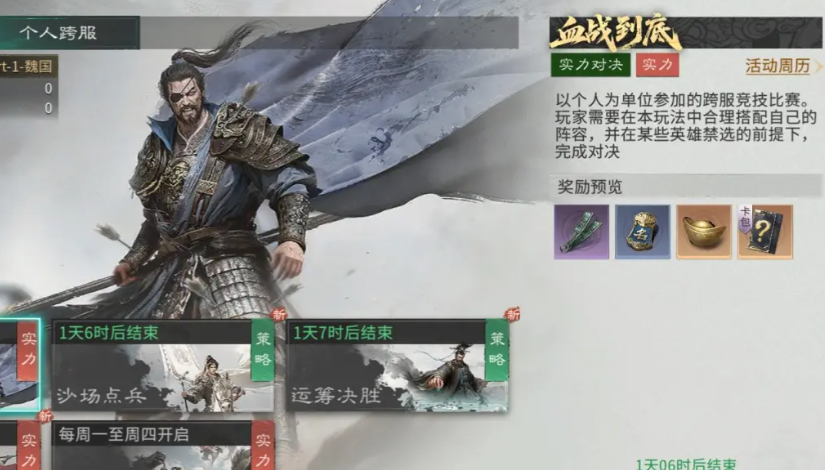 “决战洛阳”以超大规模洛阳城战场为核心,四大阵营围绕主城展开多线对抗。玩家需通过占领关键据点获取持续增益效果,并在同盟统一调度下集结兵力发起攻城。该玩法高度依赖团队协作与战术规划,最终以成功占领洛阳或累计积分最高者判定胜负,优胜者可获得丰厚资源奖励与专属荣誉。此外,针对偏好单人竞技的玩家,系统同步开放“血战到底”跨服天梯模式。该模式采用实时匹配机制,支持玩家使用自主培养的武将阵容进行1v1公平对决;自第二期起,系统将动态禁用高出场率武将,倒逼策略多元化——唯有储备多套成型阵容,方能在每周二、周五定时开启的天梯对战中稳定登顶。