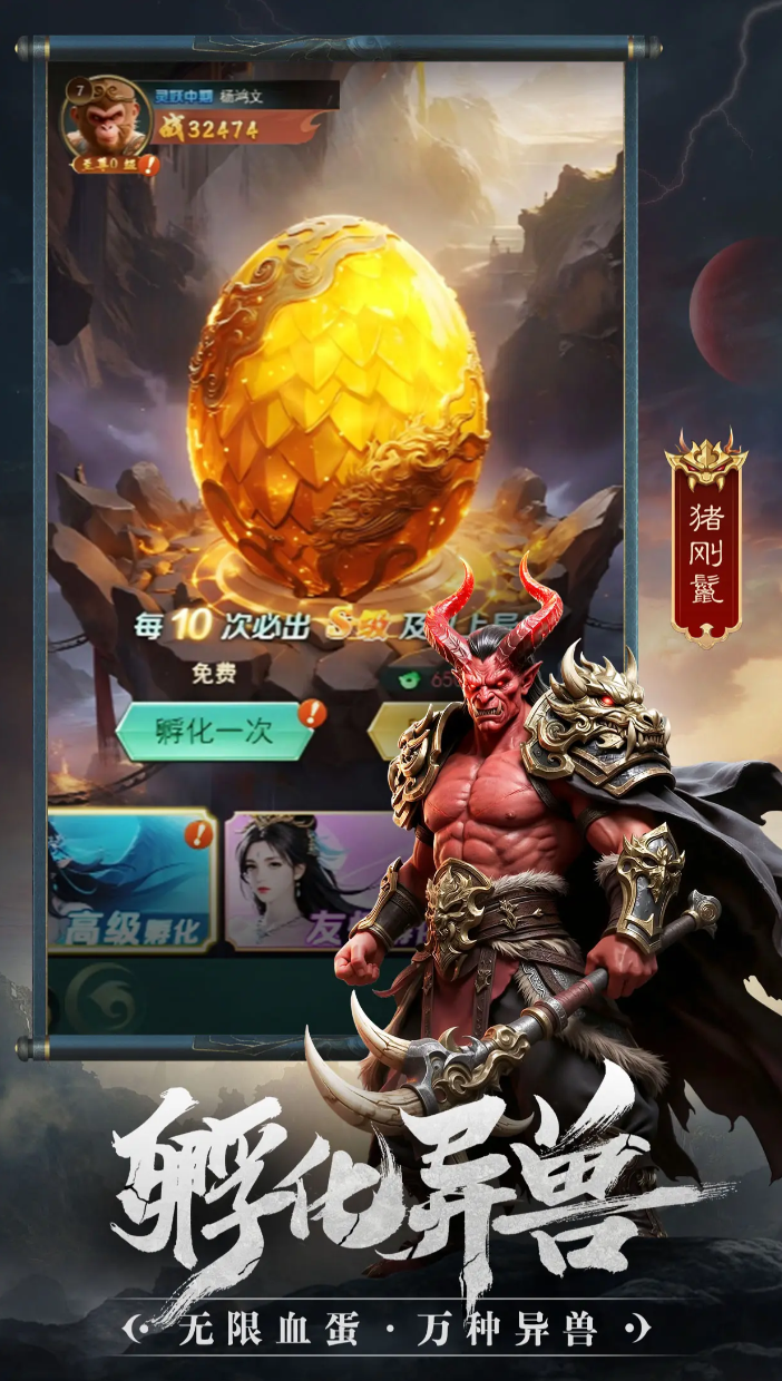 本作采用“离线挂机+在线策略”双轨并行模式。即使未主动操作,角色仍可持续产出资源;而当进入高难度关卡或九妖塔高层时,则需手动介入,精准释放大招、切换站位、规避致命伤害。游戏前期以生存为导向,推荐搭配具备治疗或护盾能力的异兽;中后期则更强调属性克制与技能协同,手动微操成为突破瓶颈的关键环节。