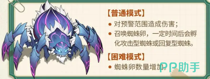 人面魔蛛(普通/困难难度):该BOSS地面攻击具备明显预警机制,会在角色脚下生成红色扇形或圆形提示区域,延迟约1.5秒后触发范围伤害。同步释放的蜘蛛卵需优先清除——普通难度共3枚,困难难度提升至6枚。其中孵化单位分为两类:近战突进型蛛怪(造成单体高额物理伤害)与治疗型蛛怪(每秒为BOSS恢复1.2%最大生命值,持续8秒)。建议采用“预警规避+卵点优先”策略:保持移动预判落点,使用控制技能或高爆发职业集中清卵,避免治疗蛛怪成型。