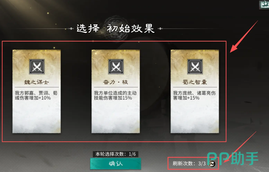 该模式采用“血量生存制”:初始拥有100点生命值,每失败一场即扣除固定血量,胜利则血量保持不变;累计失败五场,或血量归零,挑战即告终止。值得注意的是,该玩法不限重开次数,可反复尝试,降低试错成本。开局阶段需从效果、士兵、技能、英雄四类组件中完成初始构建——首轮提供3次全局刷新机会,其中士兵与英雄各开放2次选择权,总计6次关键抉择。起手效果建议优先锁定“奋力极”,可为所有主动技能附加15%伤害加成,显著强化前期输出节奏,奠定战局优势基础。