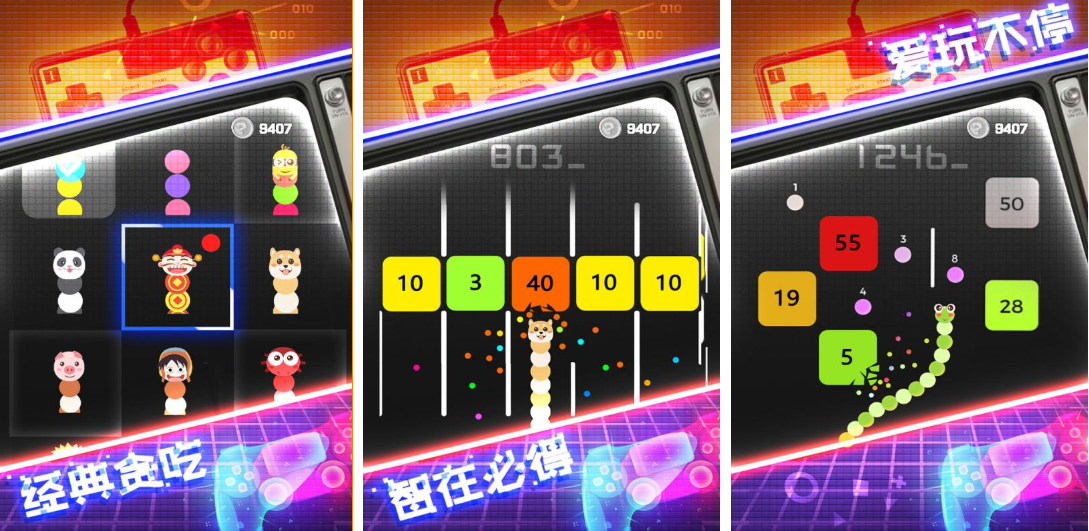 该游戏融合贪吃蛇、方块消除与数字合成三大玩法模块。主模式为高速竞速型吞噬对抗,强调反应速度与路径规划;辅以消除关卡与数值成长系统,形成策略与操作并重的复合体验。所有蛇形皮肤均免费解锁,色彩明快,动效轻盈,整体调性偏向解压向休闲娱乐,适配广泛年龄层用户。
