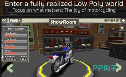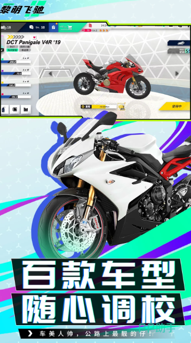 本作以硬核驾驶模拟为内核,将摩托车的重心转移、倾角控制与加速响应深度融合进3D竞速框架中。过弯时车身自动倾斜角度随速度与转向输入实时变化,油门全开瞬间的纵向加速度反馈清晰可感。游戏提供超百款授权车型,涵盖仿赛、街车、复古巡航等全品类,并支持悬挂硬度、刹车平衡、胎压等十余项参数自定义。动态天气系统会随赛季推进逐步解锁雨雾、黄昏、沙尘等环境变量,显著影响抓地力与视野表现。