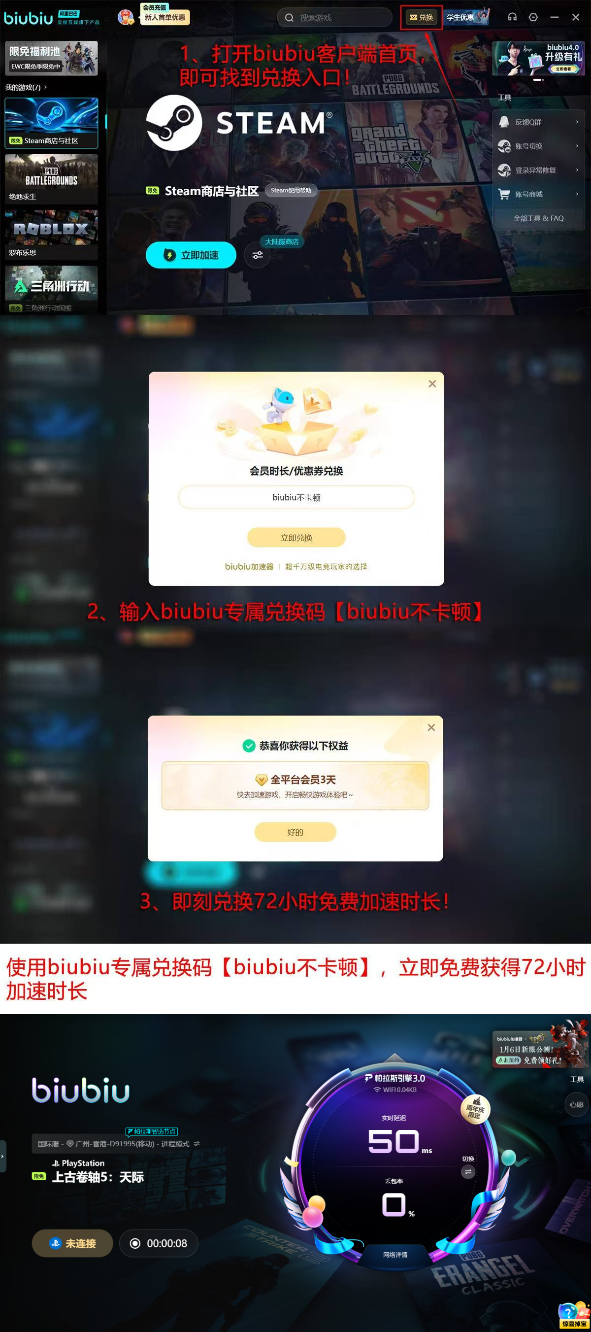 即日起新用户注册即可激活专属权益:首单免费体验时长延长至24小时;输入激活码【biubiu不卡顿】,还可叠加获得额外72小时加速服务,总计享受96小时全功能使用权,覆盖完整的新手整合包部署与调试周期。