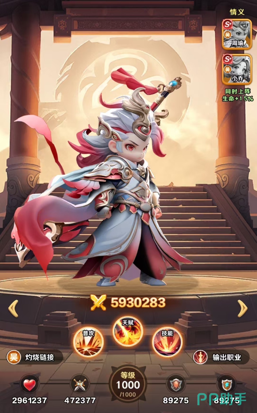 有了合适的鱼类搭配之后,接下来就是阵容方面的选择。周瑜走的就是吴国国家队的路线。具体包括孙策、孙尚香、小乔、孙权和大乔。这套阵容中有周瑜的群体灼烧蔓延机制和孙权受到攻击灼烧的能力,配合上面所说的鱼类效果,让灼烧的效率更高。还有大乔所带来的光环增益和孙尚香的回怒机制,最后由孙策打出高额输出。小乔的主要作用是降低对方怒气,还有驱散等效果,有效降低敌方输出,在攻防两端都可以压制对手。