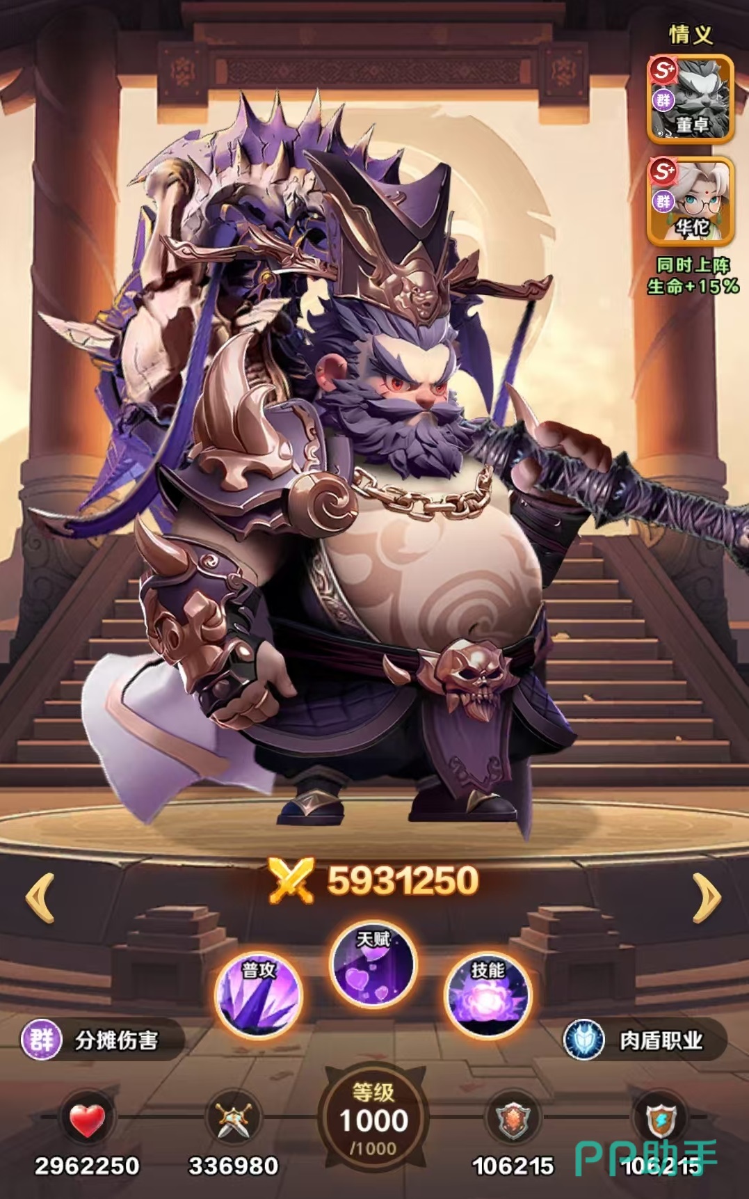 在阵容搭配方面,貂蝉最佳的选择就是走群雄路线。除了貂蝉之外,其他5名武将可以选择吕玲绮、祝融、董卓、吕布和袁绍。这些都是属于S+武将。这里既有减益增伤,又有承伤保护能力。貂蝉利用自身的魅惑,配合上吕布的超强单体输出,可以快速将敌方的输出点击杀掉。吕玲绮和祝融能够频繁施加各种减益效果限制对方发挥,同时也给另一个武将袁绍叠加伤害。董卓是阵容中的肉盾,起到保护后排的作用,帮助吕布和袁绍稳定收割。