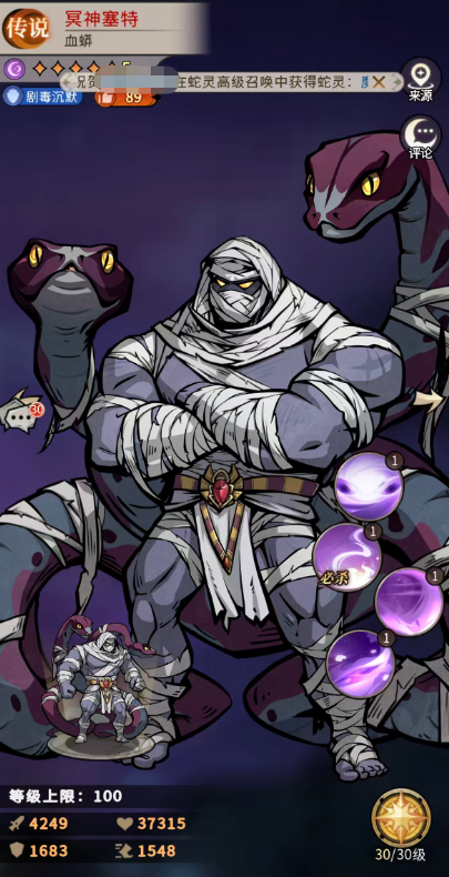 冥神塞特是游戏中稀有的传说级蛇灵,归属于血蟒谱系,核心定位为剧毒压制与战术控场双修型辅助输出角色。若队伍构建侧重持续毒伤、沉默干扰或团队净化,该角色具备极高的战术适配性。在实际配队中,尤其适合搭配依赖多段毒叠层、需稳定控场保障输出环境,或频繁承受负面状态的幻灵召唤师体系。