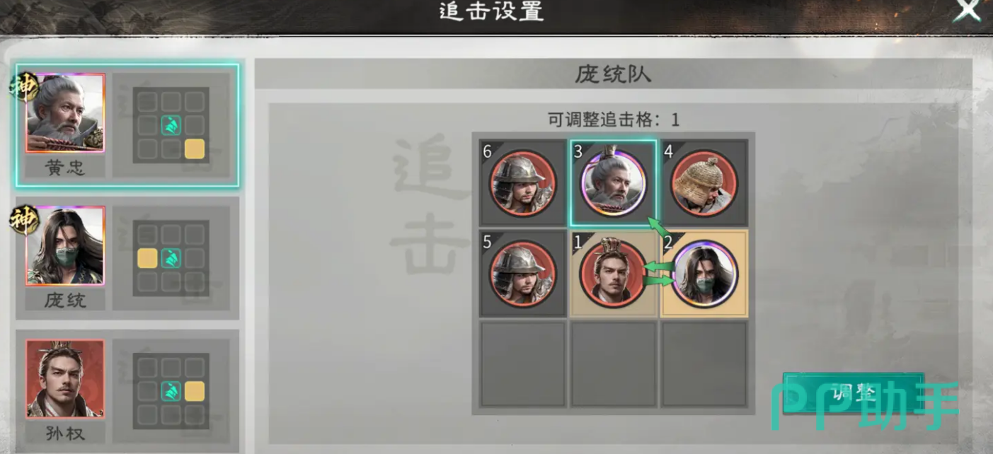 在站位方面,我们可以把赵云与庞统部署在刘备生成的两个追击格内,最大化触发刘备辅助效果,前排突进选择赵云来进行快速切入,后排远程输出上则是庞统,在安全释放范围技能清理杂兵或压制后排即可,如此也能让自身得到一个不错的战斗体验,不用担心会有核心输出被秒的问题。