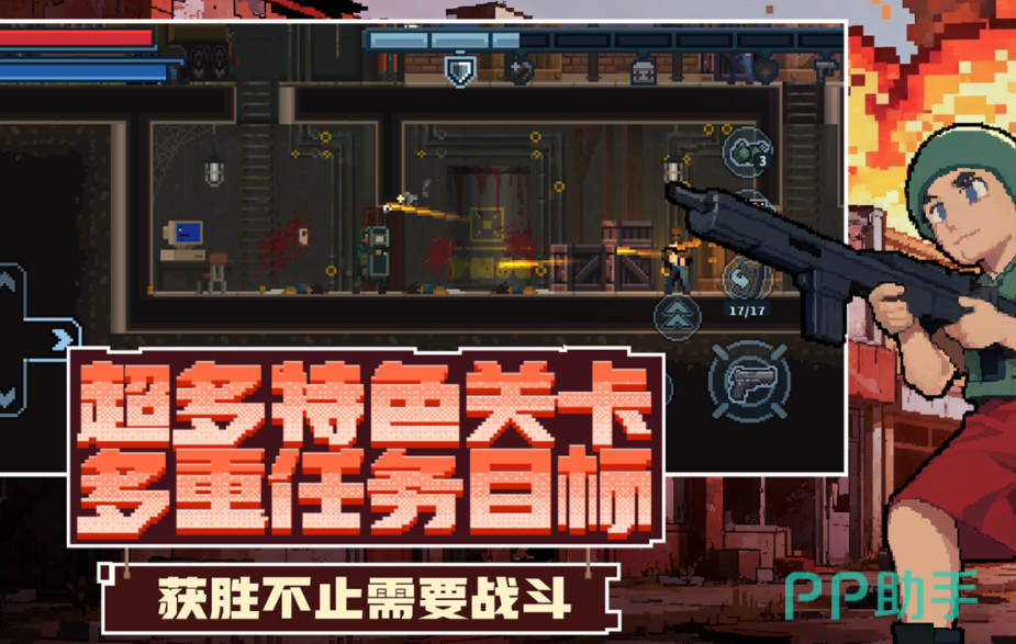 这是一款融合多人对战、生存建造与沙盒创作的像素射击手游。玩家可在开放地图中自由搭建像素结构,布置掩体、陷阱与补给点,并操控角色持上百种枪械展开实时对抗。支持室内近战搜寻、动态伏击与战术协同,射击手感扎实,后坐力反馈清晰,且提供枪械改装系统与个性化护甲外观定制功能。