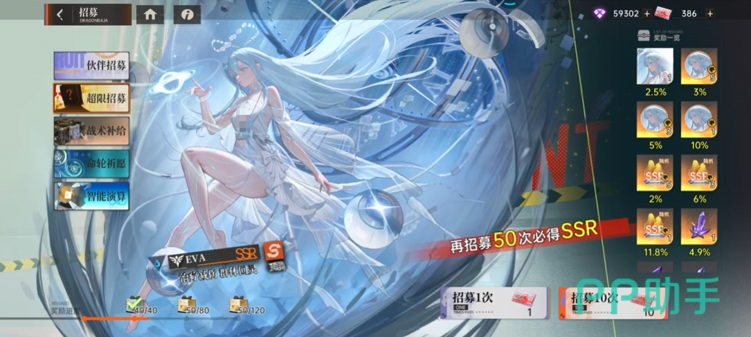 而且这个超限招募也是有保底机制设置的,保底不是很多,50抽就能保底,在抽取次数分别达到40/80/120次的时候,就能额外获取对应数量的超限觉醒石,这也是非常稀有的奖励,如果当期的角色不想抽,就可以将道具留到下个角色进入时,在考虑是否下池子。