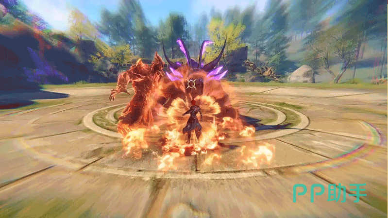 首先看普攻1,以熔岩附着在双臂上,快速打出刚劲的拳法攻击;普攻2,自身拥有“狂焱”时获得强化普攻,最后一段普攻可以持续连打。普攻3,在具有“狂焱”时获得强化跳跃普攻,从空中释放普攻后,可持续快速锤地,震出喷涌的岩浆攻击。