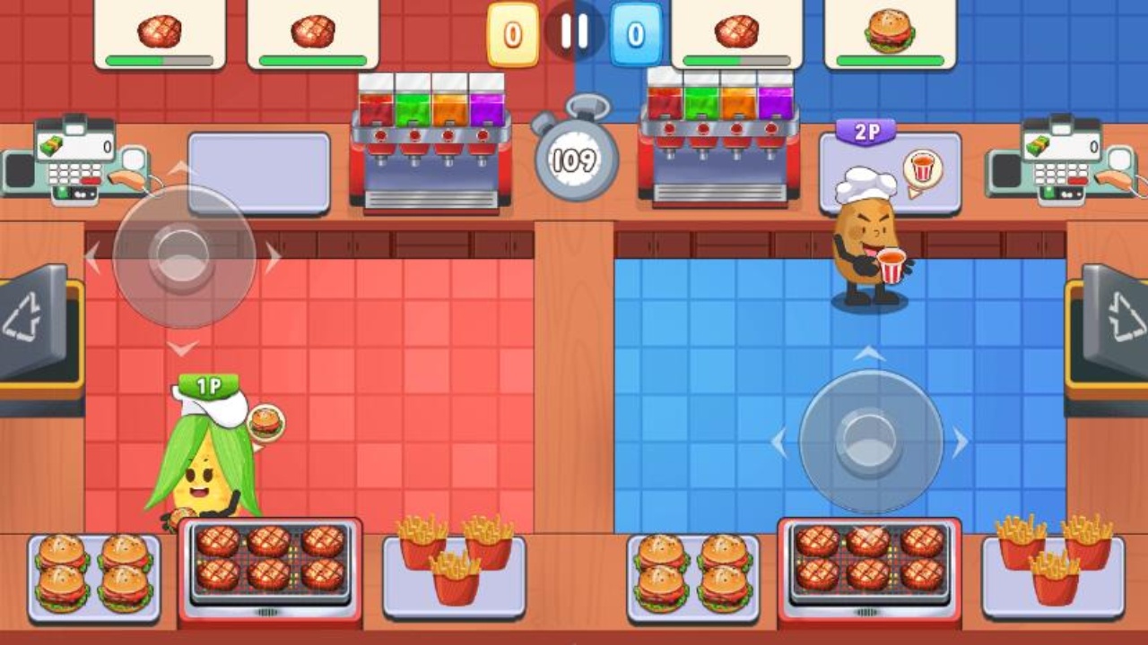 本作构建沉浸式模拟厨房场景,玩家需分工完成食材采集、清洗、切配、烹饪及装盘全流程。每单订单需双方协同规划动线与节奏——例如一人主理切菜环节,另一人专注火候控制。随着关卡推进,订单数量与菜品复杂度逐步提升,考验的是实时响应与流程预判能力,而非反应速度或操作精度。