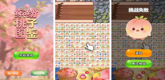 基于三消底层逻辑重构主题表达,将水蜜桃、蟠桃、油桃等超百种真实桃类果实转化为可交互图鉴元素。每种桃子拥有独立建模细节(果皮绒毛、光泽度、切面纹理)及对应风味描述。初始布局为6×8网格随机排列,玩家需滑动连接≥3个同品种桃子完成消除;一次消除数量达5个及以上触发连锁反应,分数呈指数增长。通关条件包含指定品种收集量、总分阈值及步数限制三类目标。