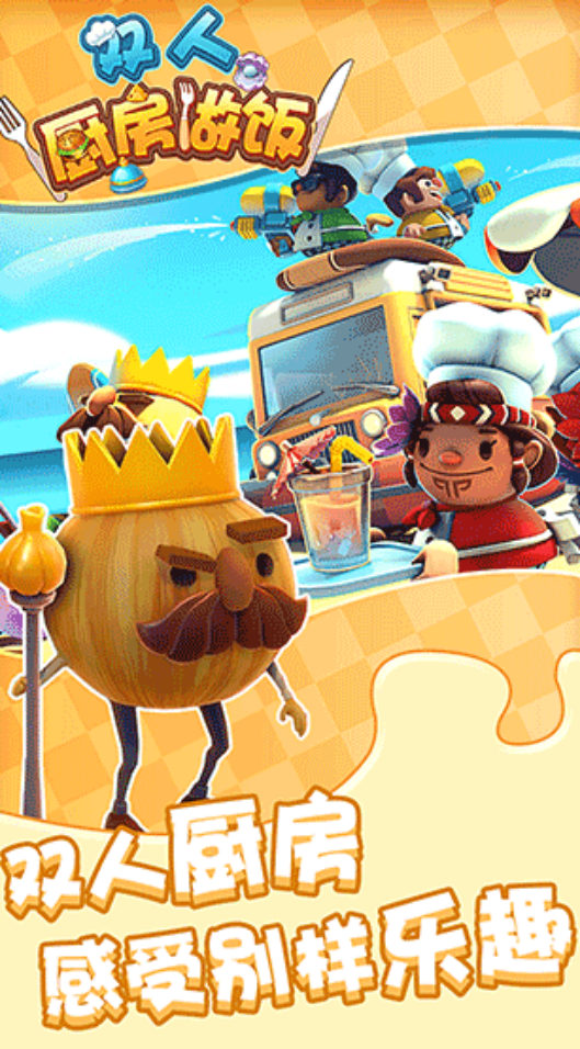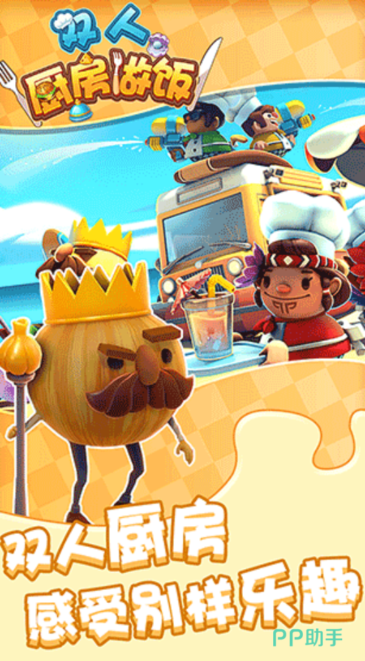 支持双人联机合作与实时对战两种核心玩法。玩家可自由切换角色,在快节奏订单压力下协同完成备料、烹制、装盘全流程。关卡中随机触发干扰事件——如临期食材预警、灶台故障、顾客加急催单等,需通过分工响应与技能配合化解危机。操作反馈灵敏,界面清晰,适配短时碎片化体验。