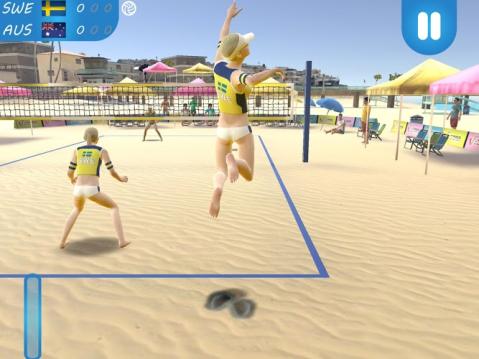 一款主打轻度竞技体验的沙滩排球模拟游戏。玩家通过滑动屏幕控制发球角度与扣杀力度,结合物理引擎模拟真实球体轨迹与角色碰撞反馈;沙地地形变化亦会影响球的反弹特性。提供三种难度等级、多款可选角色造型,并支持本地联网双人对战模式。