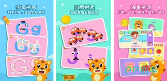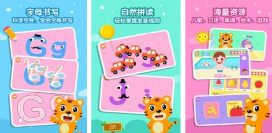 面向儿童英语启蒙阶段,涵盖字母书写、词汇记忆、语音输入等模块。字母教学采用拟物化设计(如字母g由动态蛇形笔画构成),强化视觉联想;单词学习结合翻牌配对与音频跟读,支持主动输出;儿歌资源库按主题分类,实现语言输入与韵律感知双轨并进。