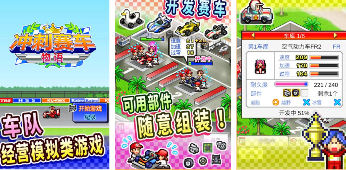 一款融合模拟经营与轻度驾驶的像素风策略作品。玩家身份并非车手,而是车队经营者:从招募车手与技师、研发发动机/轮胎/底盘三大核心部件,到分析赛道特性、规划进站时机与调校方案,全程参与赛车生命周期管理。数值系统扎实,成长路径清晰,用复古美术承载现代赛车工程逻辑,适合偏好深度养成与战术推演的玩家。