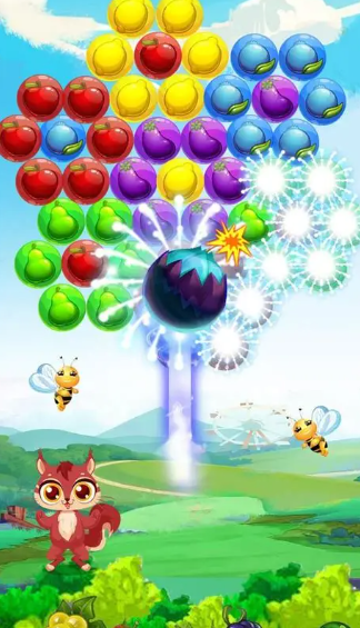以拟真水果为视觉载体,所有泡泡建模采用PBR材质渲染,具备细腻光泽与体积感。基础规则为发射同色水果泡泡达成三消,关卡目标包括限时清除、分数达标、收集特定元素等。共设七大玩法分支:经典闯关、限时挑战、无限生存、Boss战、好友对战、全球实时排行榜、赛季通行证。社交系统支持添加好友、发起PK、共享成就进度,任务体系覆盖日常、周常与里程碑节点,奖励涵盖限定头像框、特效皮肤等可视化成长资源。