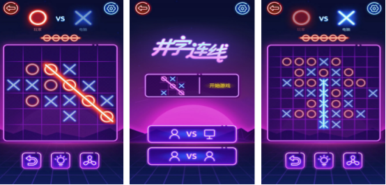 经典策略框架的现代化演绎,提供人机对战与本地双人对战两种模式。双方分别执“X”与“O”,在3×3网格中轮流落子,率先以横、竖、斜任一方向连成三点者获胜。规则极简但蕴含基础逻辑推演——预判对手意图、布局防守反击、理解空间对称性。内置难度分级AI,适配初学儿童至进阶思考者,是培养规则意识与短时决策能力的轻量级工具。