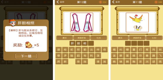 核心玩法为图像化成语解析,每关随机生成具象化场景图。例如画面呈现“空中飞鸡”与“地面碎蛋”,需准确关联“鸡飞蛋打”这一固定表达。题目设计强调形义结合,考验观察力、联想力与传统文化积累。内置提示系统与社交求助功能,保障不同认知水平用户均可持续挑战。