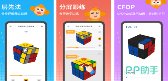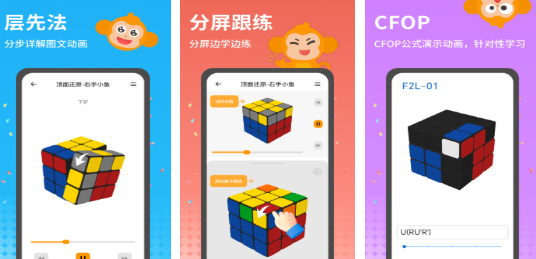 专为初学者设计的结构化学习平台,系统涵盖二阶魔方至异形魔方(如金字塔、斜转等)的完整进阶路径。内置分步动画教学,采用红蓝白经典配色方案,色块边界清晰,显著降低识别难度。支持按键微调与手势滑动双操作模式,集成主流解法(CFOP、层先法等),首次完整还原平均耗时约30秒。功能包含实时步数统计、一键回退、错步提示等实用辅助机制。