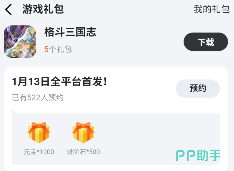 关于格斗三国志礼包领取方法就给大家分享在上面了,认准九游是没错了,大家照着上面的方法去下载九游app,趁着现在礼包剩余量还有很多,抓紧时间去预下载并领取礼包,等13号开服了第一时间去开荒冲榜,这样也能领先其他玩家。