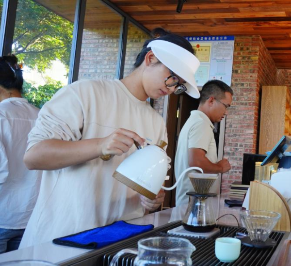 咖啡师在咖啡庄园制作咖啡。 记者 杨艳鹏 摄