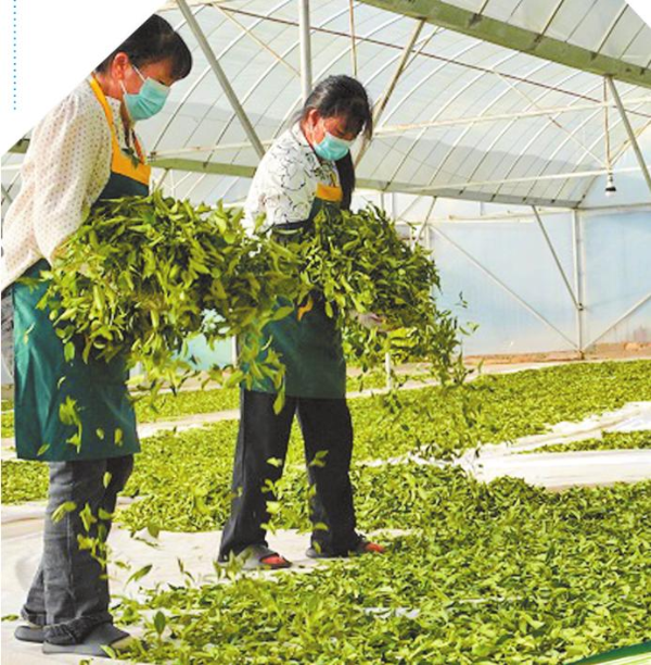 腾冲市明光镇自治村村民晾晒乌龙茶。 记者 杨艳鹏 摄